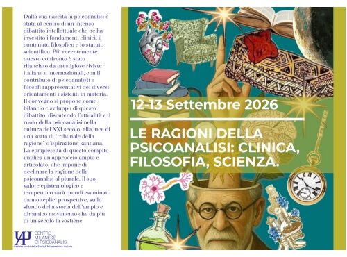 Save the Date: 13-14 settembre 2026 Il Centro Milanese di Psicoanalisi è lieto di annunciare il congresso “LE RAGIONI DELLA…