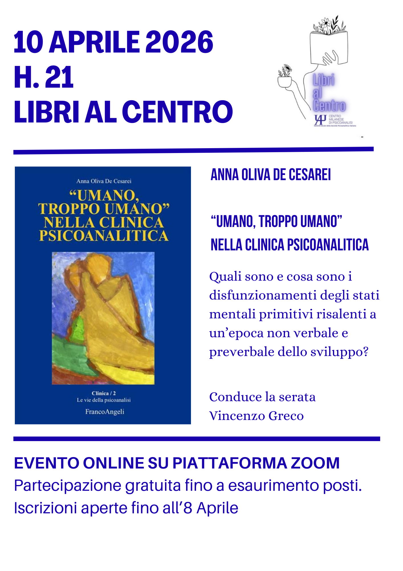 10 aprile: LIBRI AL CENTRO “Umano, troppo umano” nella clinica psicoanalitica (Anna Oliva de Cesarei)