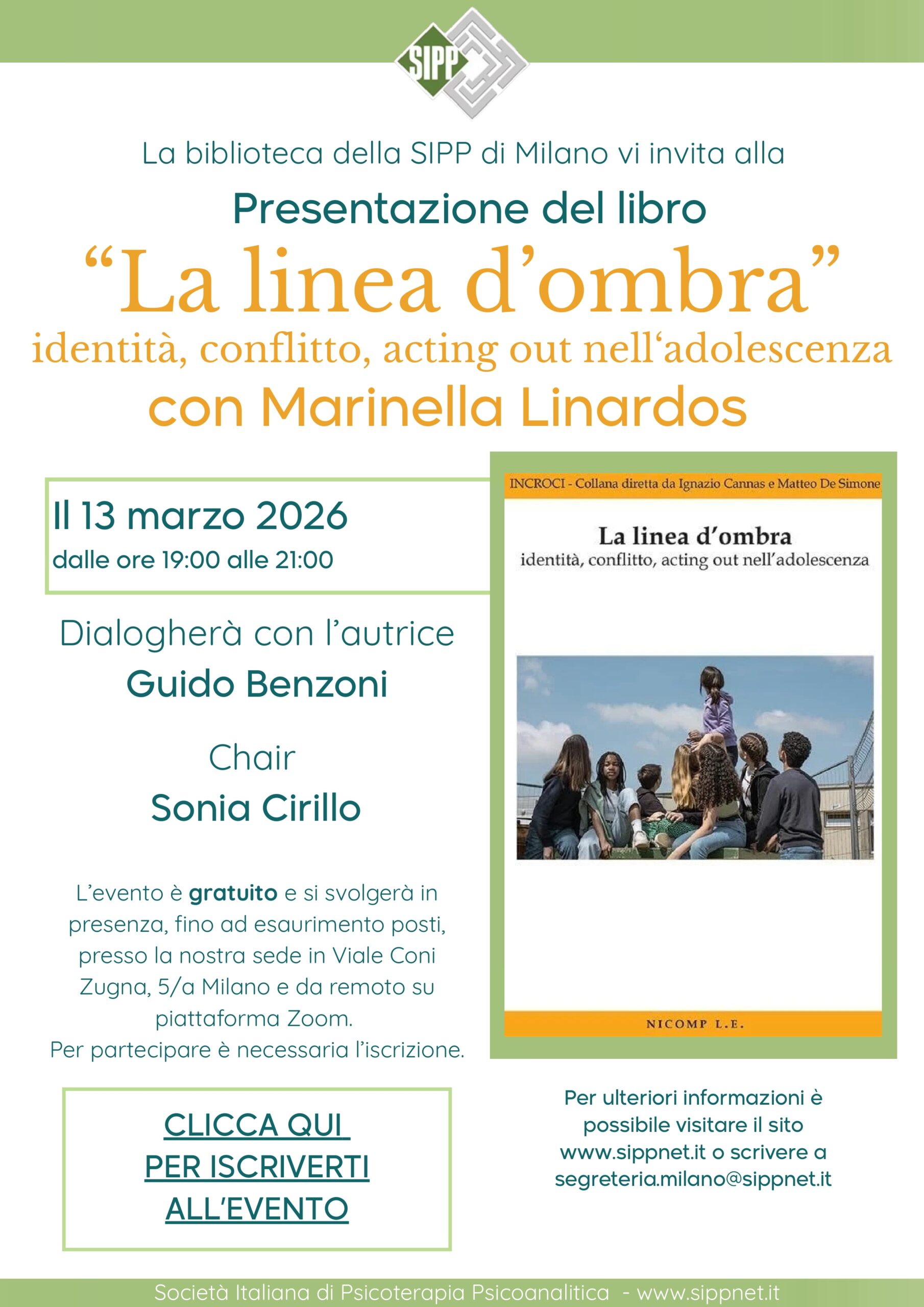 13 marzo: presentazione del libro “La linea d’ombra. Identità, conflitto, acting out nell’adolescenza” (SIPP, Milano e Zoom)