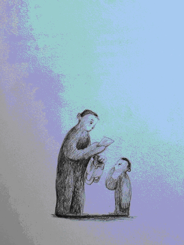 Lo zainetto del bambino si riempie così di parole ma anche di discorsi tra lui e l’uomo, di bigliettini in cui il bambino annota le esperienze fatte insieme, in cui l’uomo si era preso cura di lui.