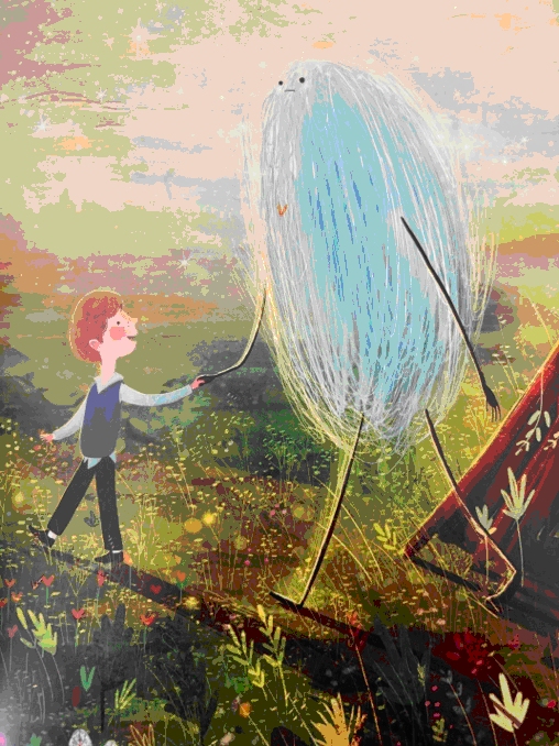L’albo inizia con questo messaggio semplice e potente: sostenere con coraggio la visita della tristezza, senza rifuggerla o lasciarla fuori a tutti i costi. Come dice un’espressione popolare, spesso le cose che facciamo uscire (volontariamente?) dalla porta poi rientrano dalla finestra. Tanto vale allora accoglierle.