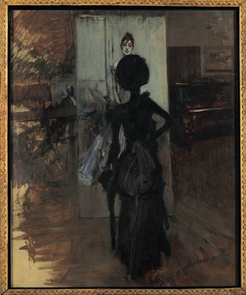 Giovanni Boldini: Donna in nero che guarda il “Pastello della signora Emiliana Concha de Ossa” Museo d’Arte Moderna e Contemporanea FERRARA